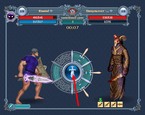 После чего необходимо выбрать духомное умение, которые вы используете. Если вы передумали, и решили провести обычную атаку, вернуться в предыдущую стойку можно нажав на символ молнии